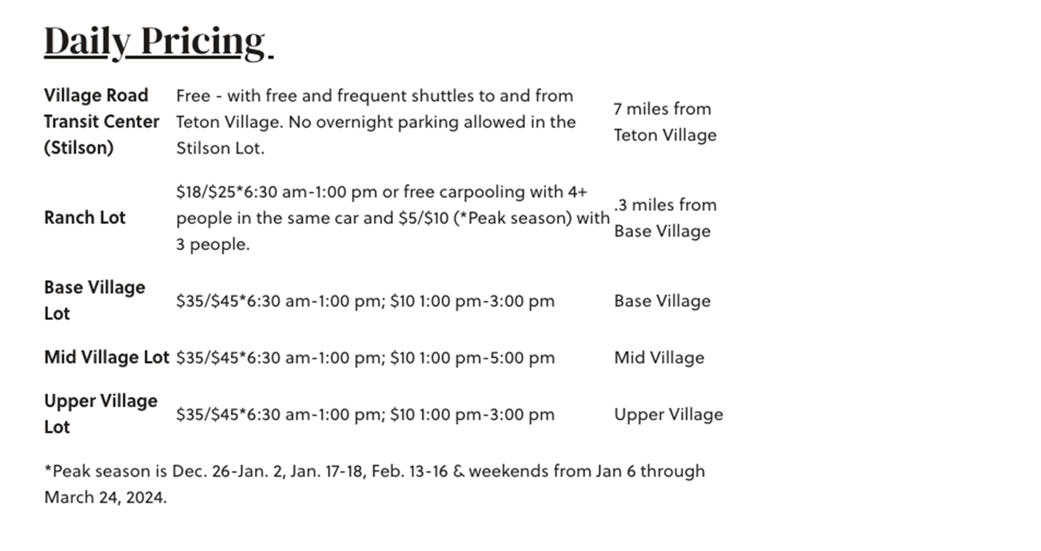 WHERE SHOULD I PARK IN TETON VILLAGE & PRICING?