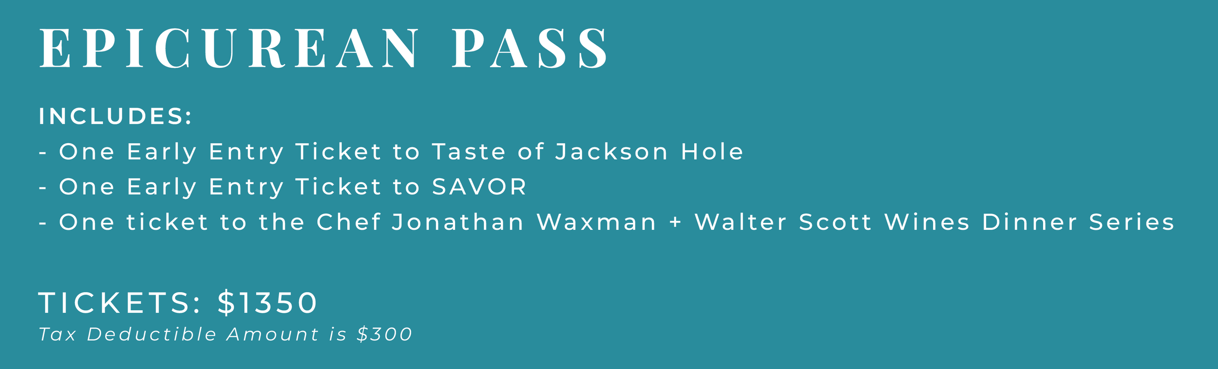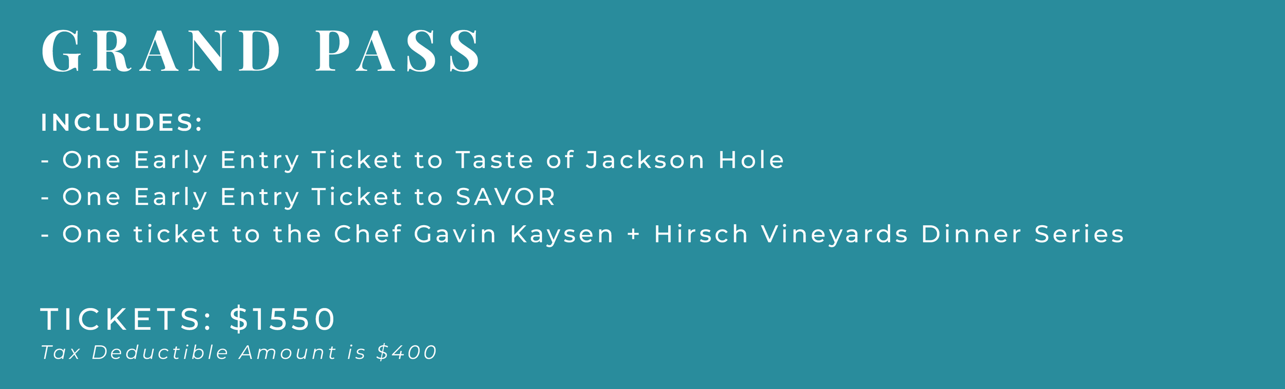 This tickets offers guests the added advantage of entering Taste of Jackson Hole 30 minutes early. Beat the crowds and have more time to explore the tasting booths.